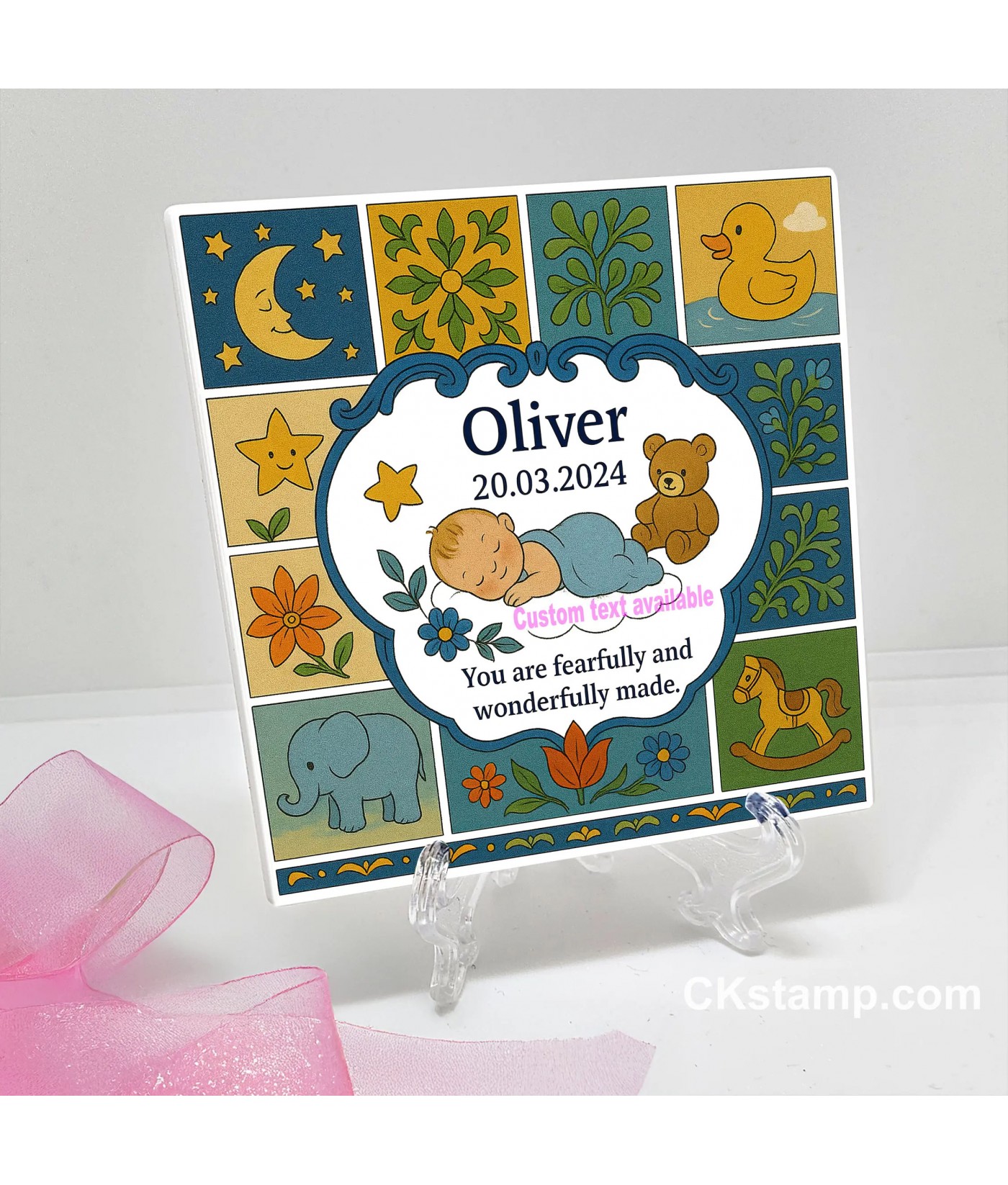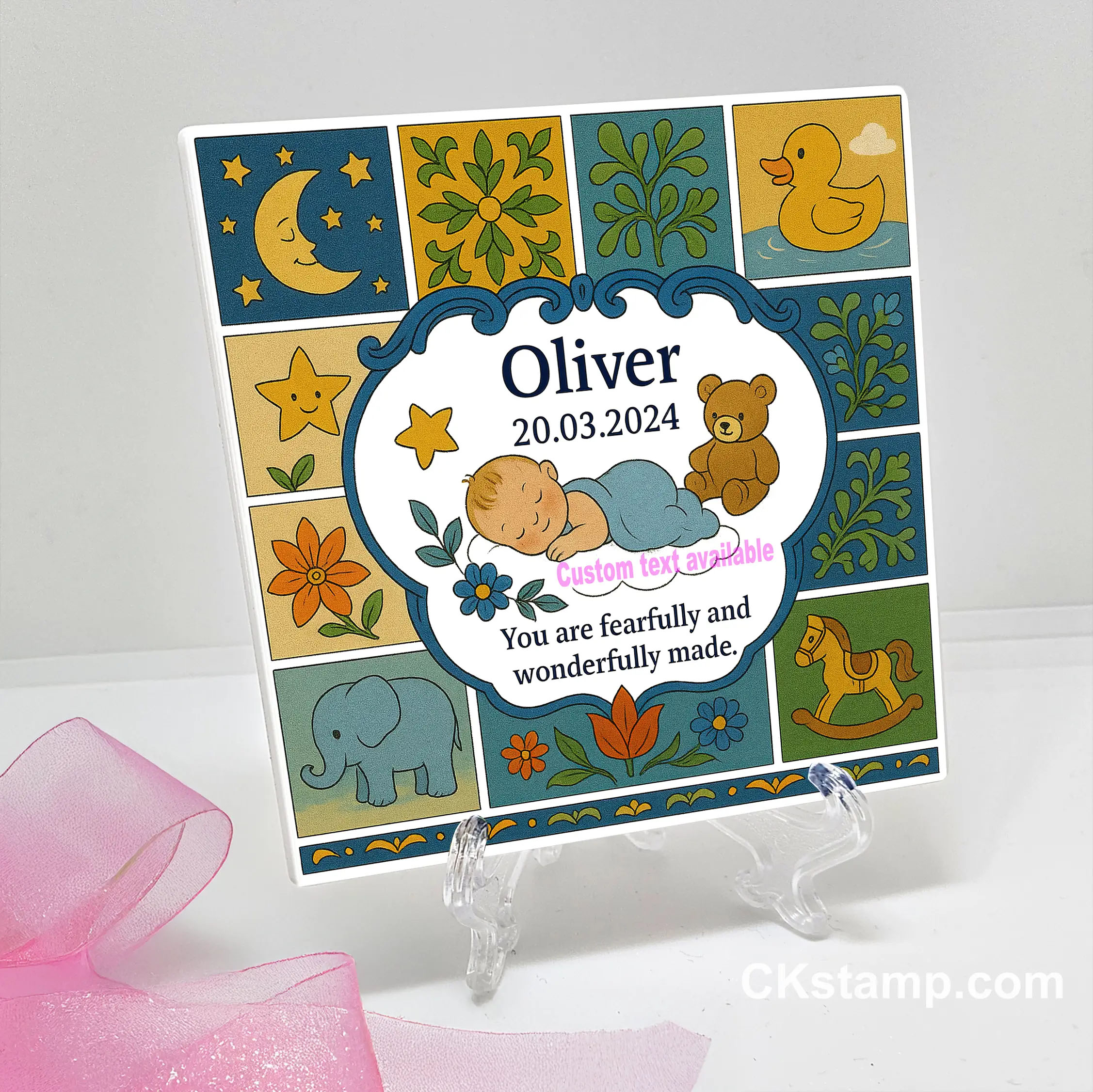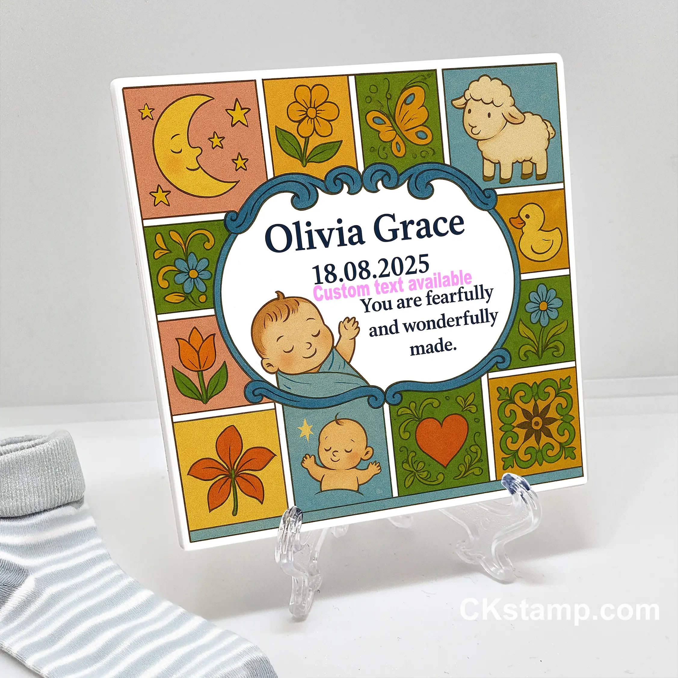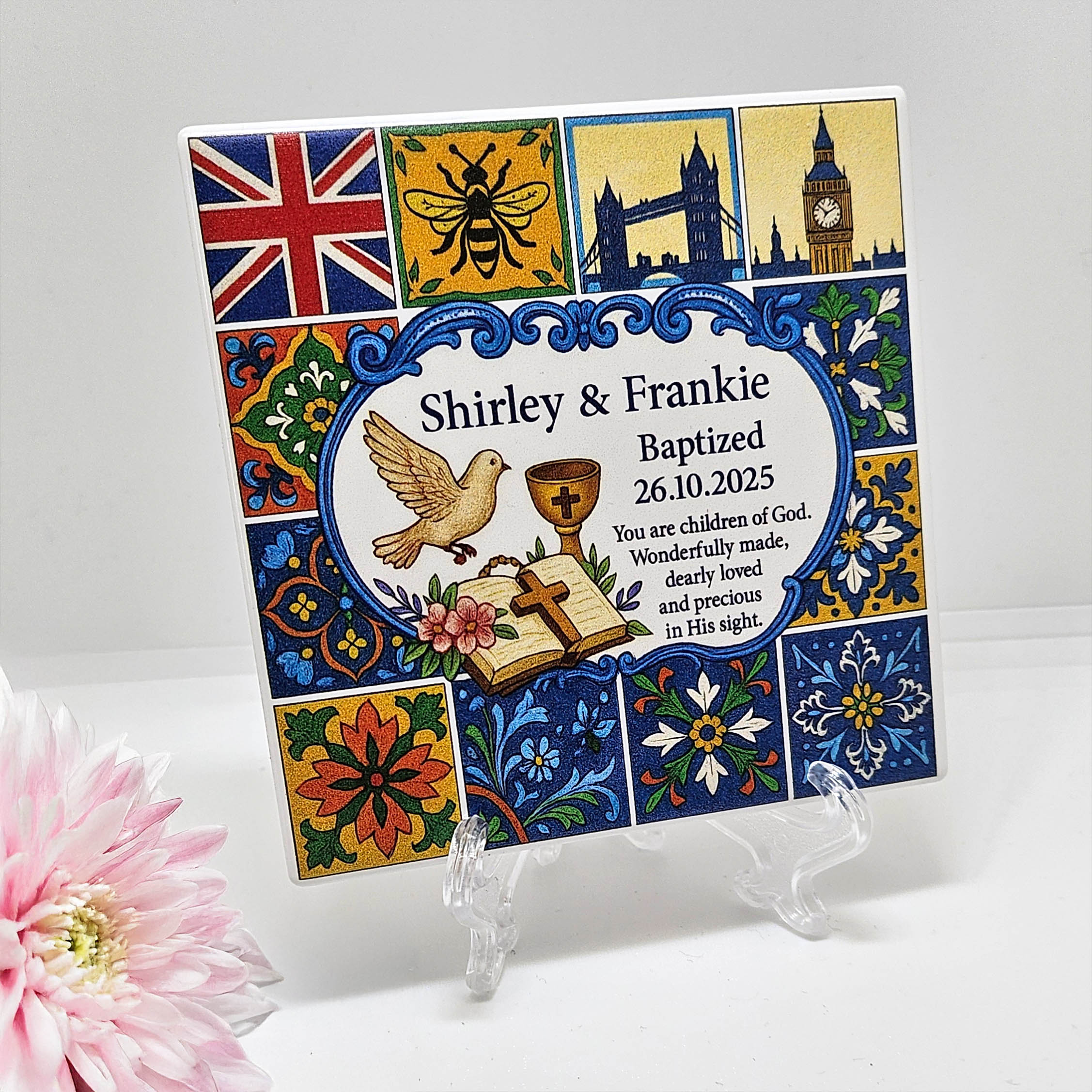 UK-Made Personalised Ceramic Keepsake Tile (Custom Text Available)This beautifully printed ceramic tile is designed and made in the United Kingdom, using high-quality materials and professional dye-sublimation printing for long-lasting, fade-resistant colour.All artwork featured on the tile is original and copyright-protected (All Rights Reserved). Each piece is individually customised, making it a meaningful keepsake for any special moment.Perfect as a gift or a decorative piece for home, office, nursery, or church.https://youtube.com/shorts/7z43oTcFumI?feature=sharePersonalisation OptionsYo..